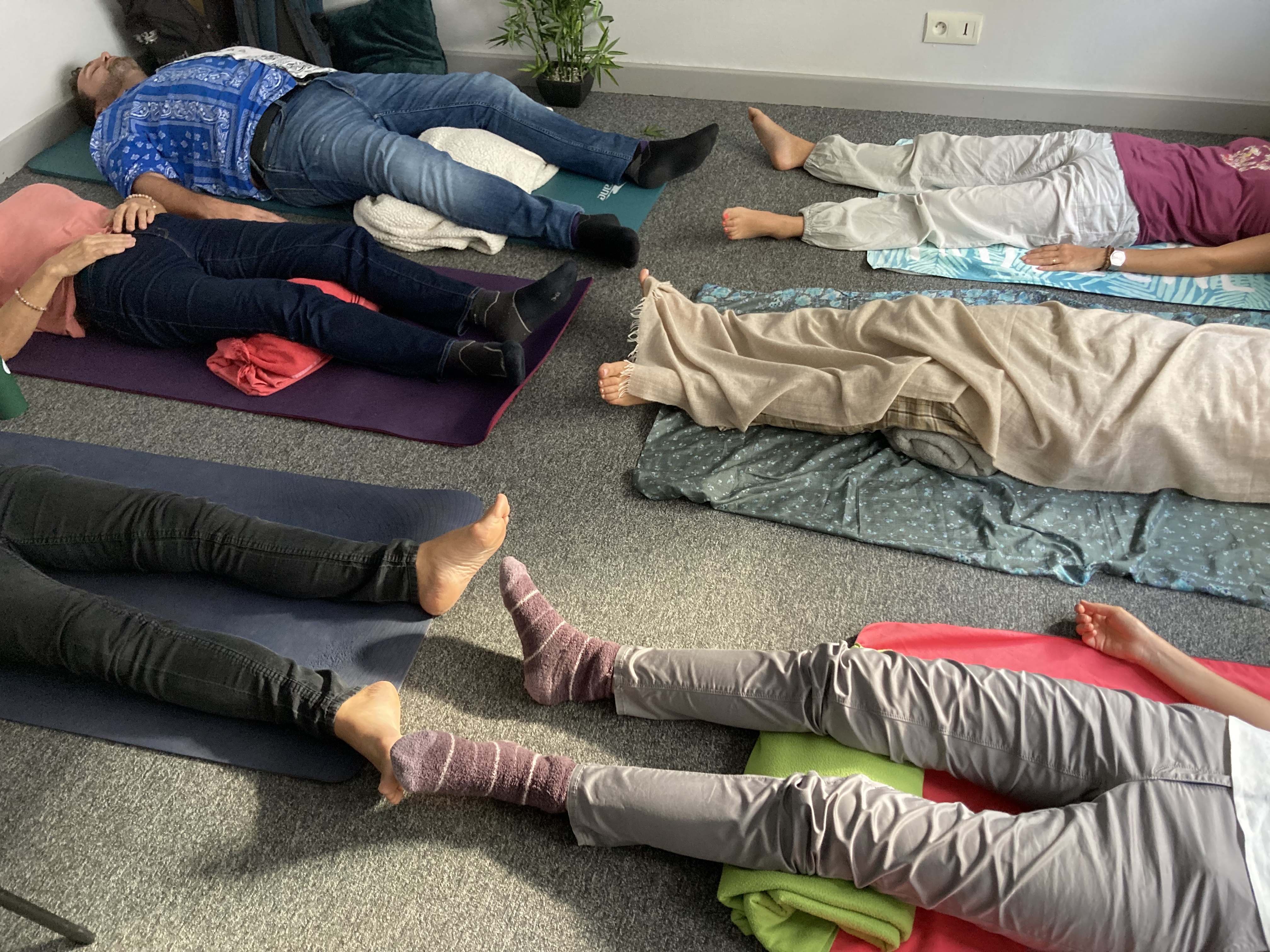 Chaque journée commence par une séance longue de breathwork, suivie de retours, debriefs, temps de parole, Q&R, pratiques en binômes.